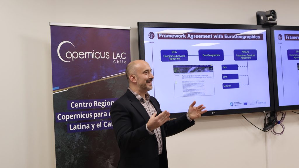 Last week, José Miguel Rubio Iglesias, an engineer in geodesy and cartography and currently Copernicus In Situ Data Expert at the European Environment Agency (EEA), visited Chile for two important events at ECLAC and CopernicusLAC Chile, where he discussed the importance of access to and management of geospatial data for the development of satellite services and observations, both globally and regionally.