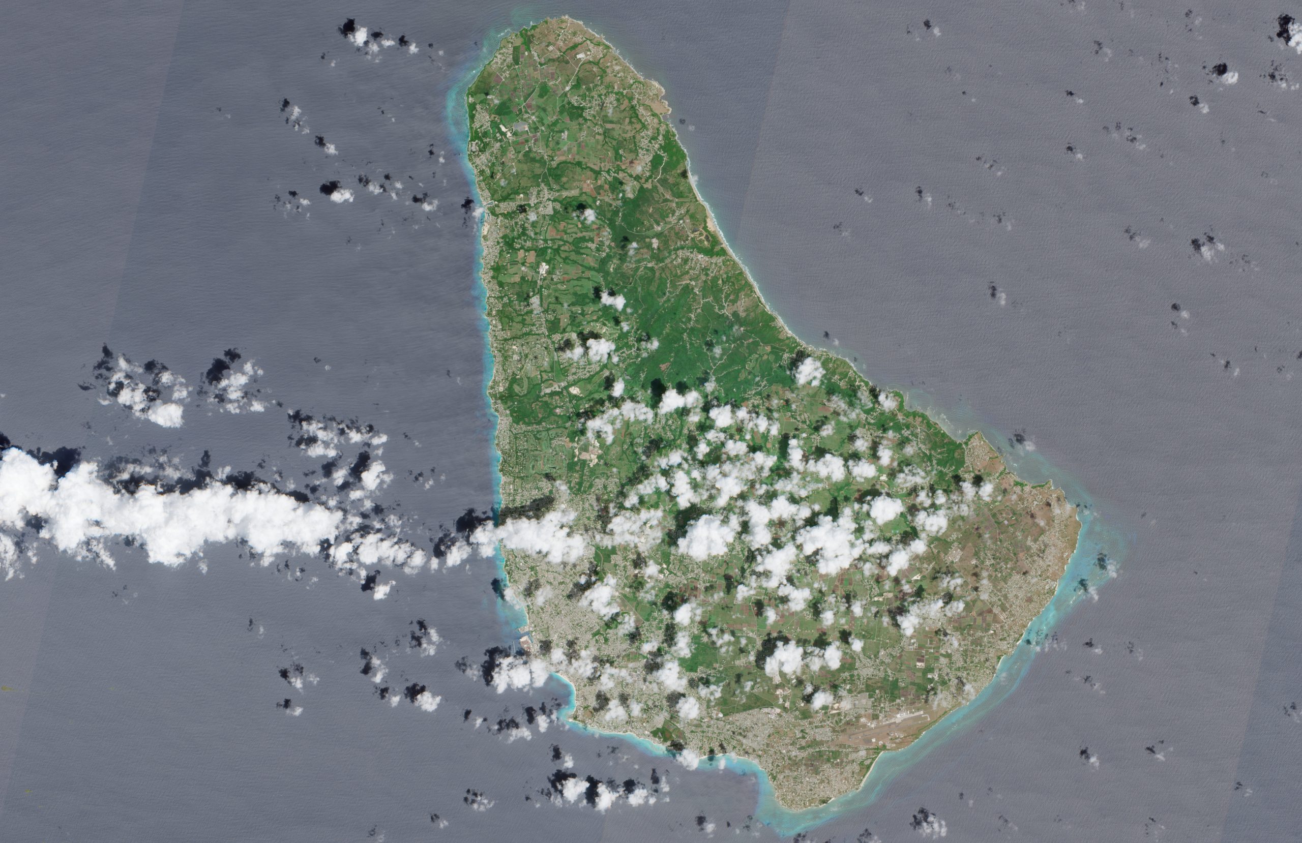 Barbados es un país insular situado en el extremo oriental del Caribe, dentro del arco de las Antillas Menores. Con 34 kilómetros de largo por 23 de ancho, se formó a partir de antiguos arrecifes de coral y depósitos marinos que dieron origen a un suelo de piedra caliza. Esta condición geológica explica la abundancia de playas de arena blanca y los arrecifes que rodean su costa, además de su clima tropical con estaciones seca y lluviosa bien definidas. El punto más alto es el Monte Hillaby, que alcanza los 340 metros sobre el nivel del mar.