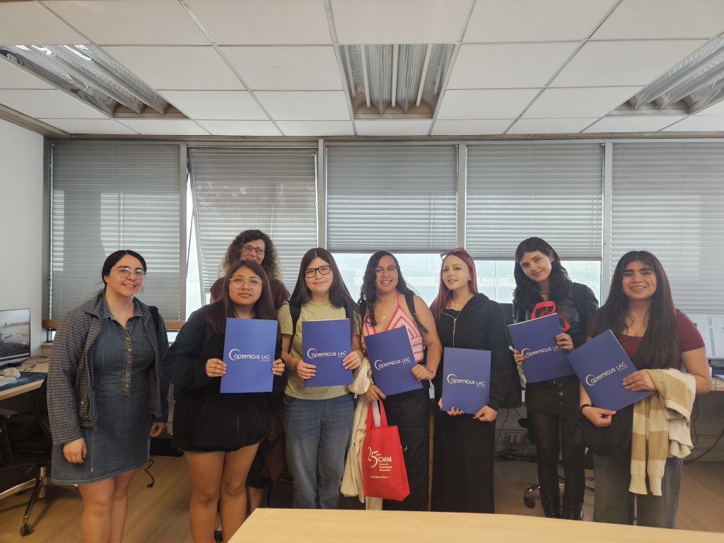 El jueves 30 de octubre, CopernicusLAC Chile recibió en sus dependencias a integrantes del Encuentro de Mujeres Matemáticas (EMMA) de la Universidad Técnica Federico Santa María (USM), Campus Casa Central Valparaíso. La actividad reunió a estudiantes del grupo con investigadoras del Centro de Modelamiento Matemático (CMM), con el propósito de acercar a jóvenes interesadas en las matemáticas al trabajo científico que se desarrolla en el centro, fomentando vocaciones científicas y fortaleciendo vínculos entre comunidades académicas.