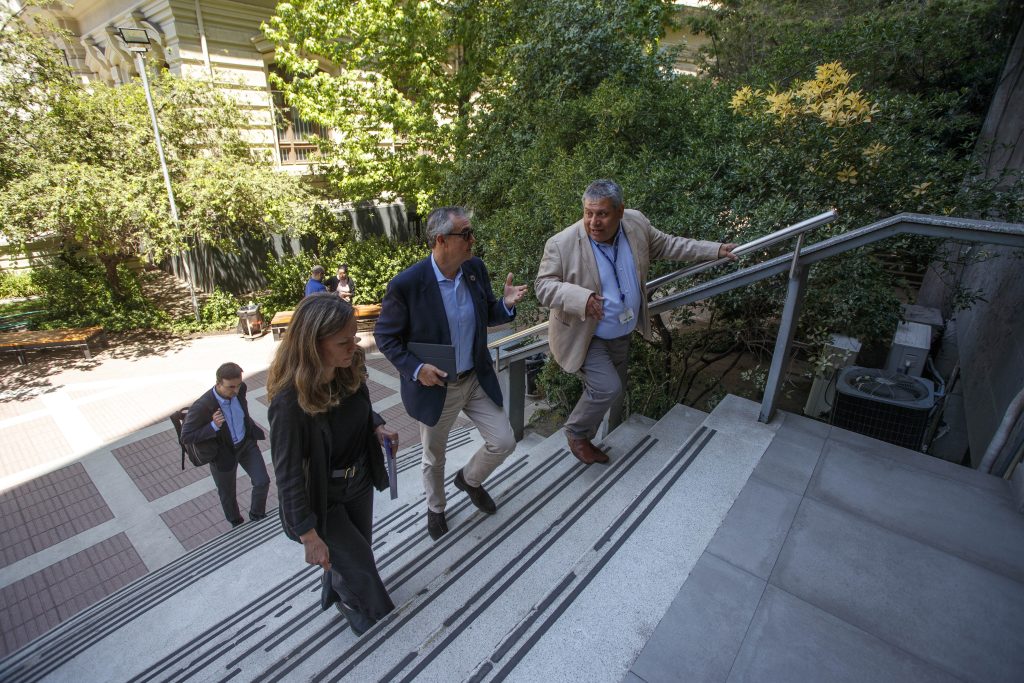 Tras aquello, la comitiva sostuvo una reunión con Francisco Martínez y Marcela Munizaga, decano y vicedecana de la Facultad de Ciencias Físicas y Matemáticas de la Universidad de Chile, respectivamente.