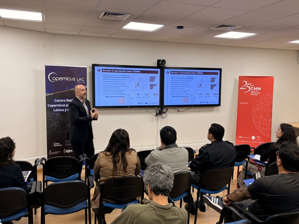 La semana pasada, José Miguel Rubio Iglesias, ingeniero en Geodesia y Cartografía y actual Experto en Datos In Situ de Copernicus en la Agencia Europea de Medio Ambiente (EEA), visitó Chile en el marco de dos actividades destacadas en la CEPAL y en CopernicusLAC Chile, donde abordó la importancia del acceso y la gestión de datos geoespaciales para el desarrollo de servicios y observaciones satelitales, tanto a nivel global como regional.