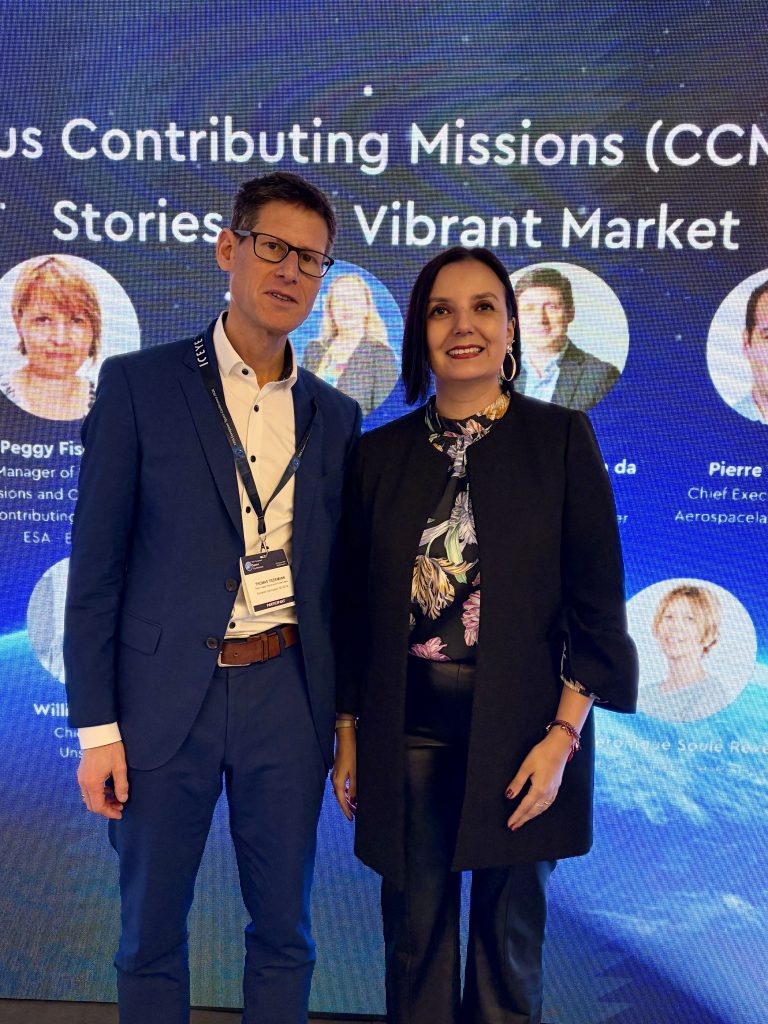 Em representação da CopernicusLAC Chile, esteve presente a coordenadora executiva, Macarena Pérez, cuja participação visou consolidar o trabalho de fortalecimento da ligação do Centro com o ecossistema espacial europeu.