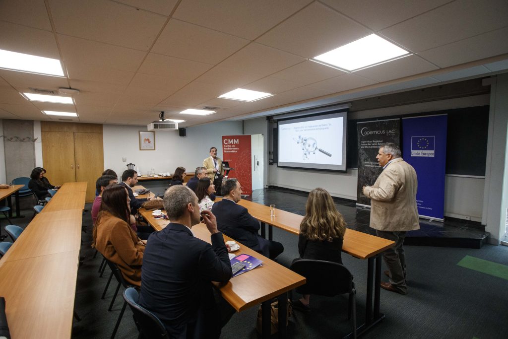 O diretor do CopernicusLAC Chile, Florencio Utreras, detalhou os processos de aquisição de infraestrutura, o consumo de energia, o sistema de resfriamento por água implementado pela Universidade do Chile e o trabalho realizado para estabelecer acordos de colaboração com os países da América Latina e do Caribe. Além disso, informou que, em abril, estará operacional o repositório de imagens online e, em maio, o serviço de processamento de imagens para usuários da ALyC.