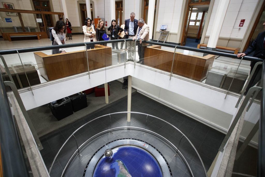 O Diretor para América Latina e Caribe da Direção Geral de Parcerias Internacionais (DG INTPA) da União Europeia, Félix Fernandez Shaw; a Embaixadora da União Europeia no Chile, Claudia Gintersdorfer; e a Embaixadora do Chile perante a União Europeia na Bélgica e cumulativamente em Luxemburgo, Gloria Navarrete, lideraram a comitiva que, na quarta-feira, 6 de novembro, visitou o Centro de Modelagem Matemática (CMM) da Universidade do Chile para conhecer em detalhe o funcionamento do Centro Regional Copernicus para América Latina e Caribe (CopernicusLAC Chile).