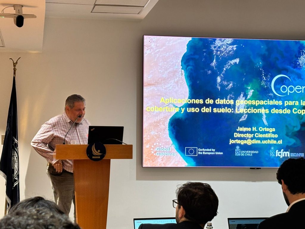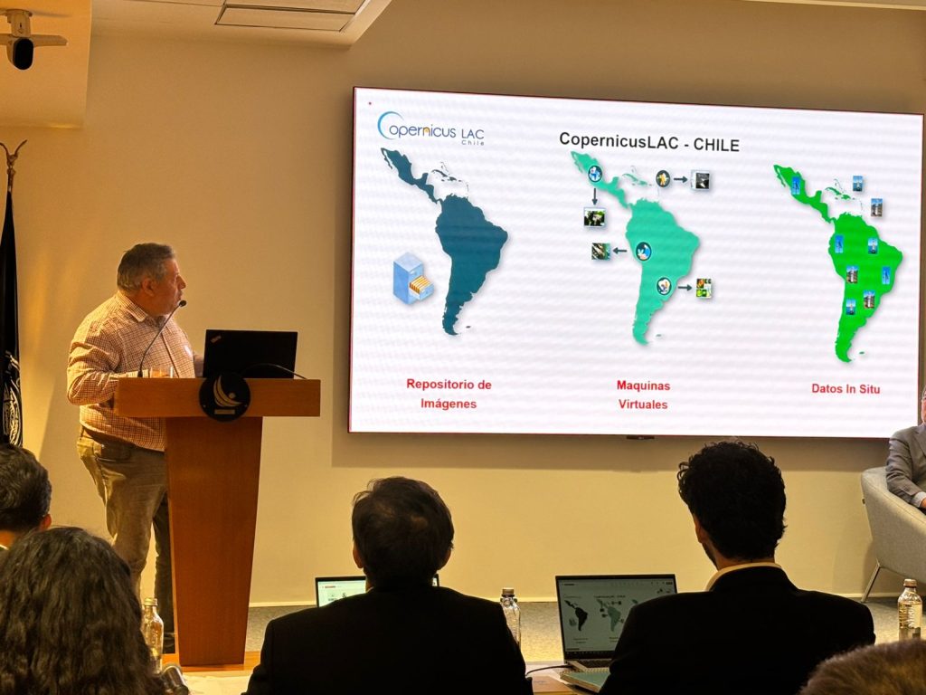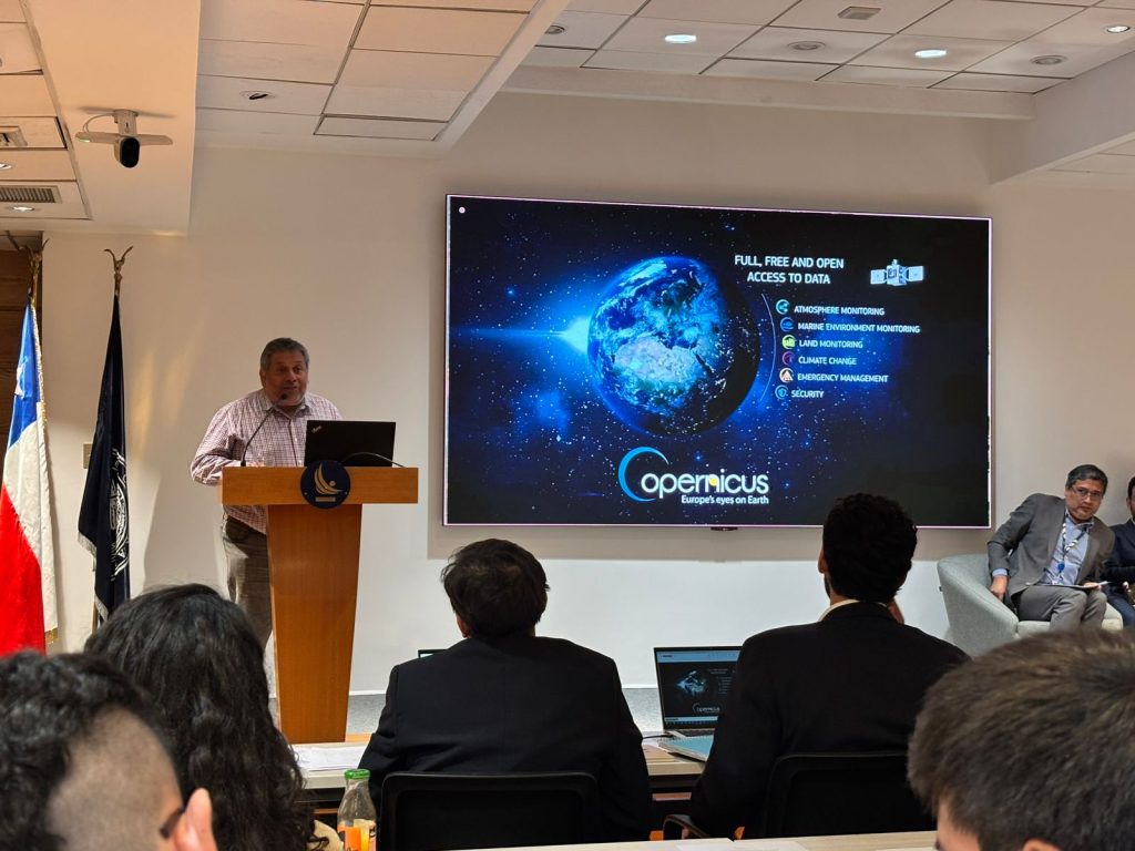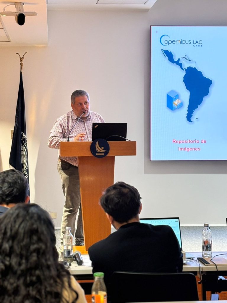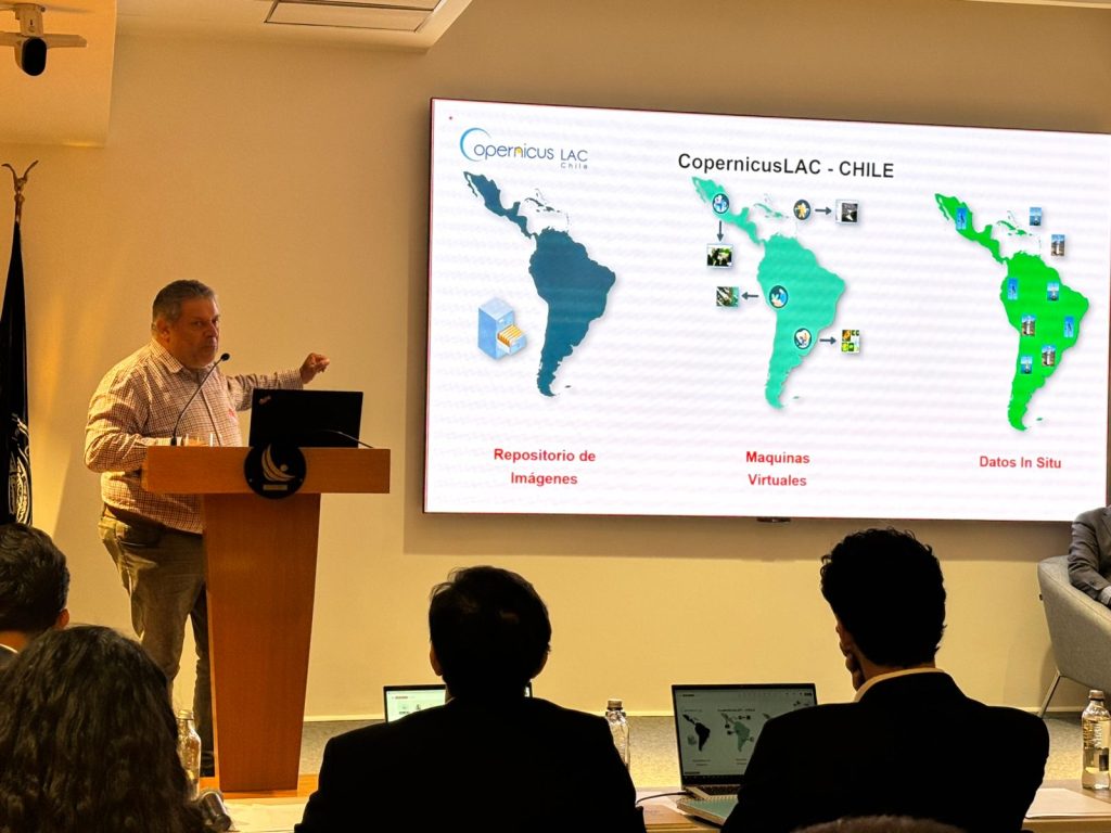 Na última quarta-feira, 4 de dezembro, a equipe do CopernicusLAC Chile, liderada por seu diretor científico Jaime Ortega, participou do Workshop de Inovação e Aplicações com Dados Geoespaciais no Chile, organizado pelo Banco Central do Chile. O objetivo desse evento foi apresentar inovações e soluções tecnológicas na área, integrando ferramentas como sensoriamento remoto, técnicas de modelagem e aprendizado de máquina.