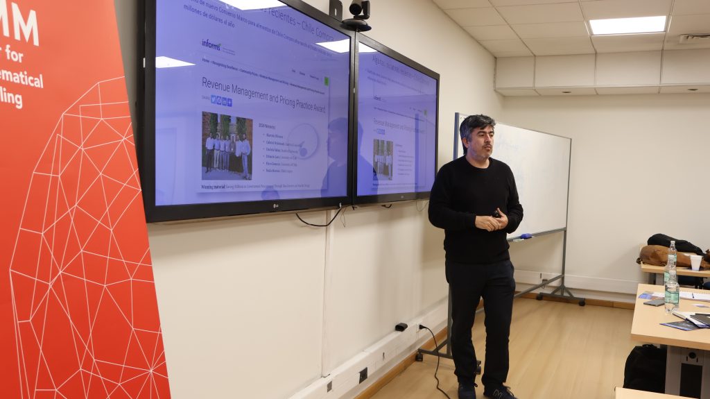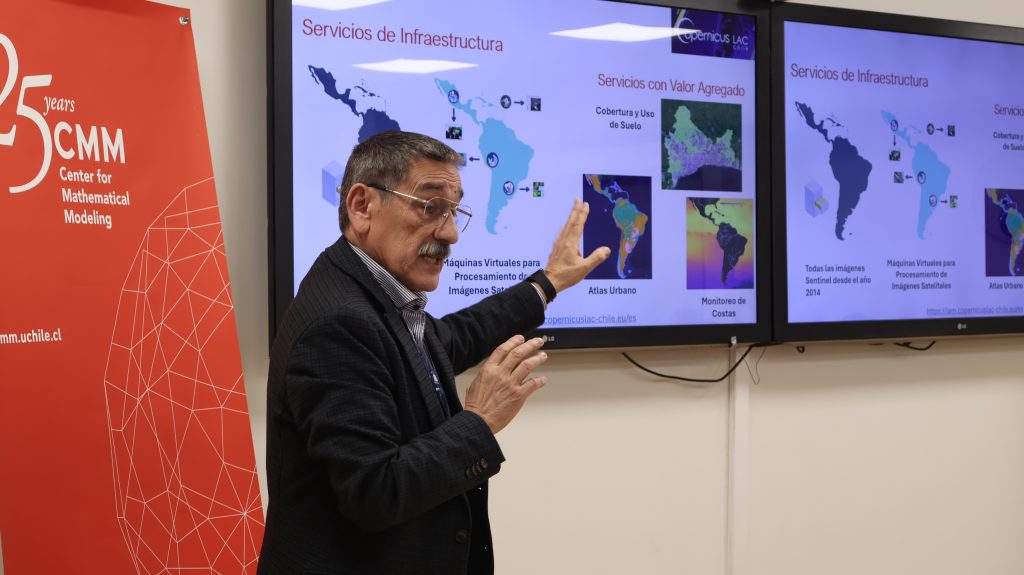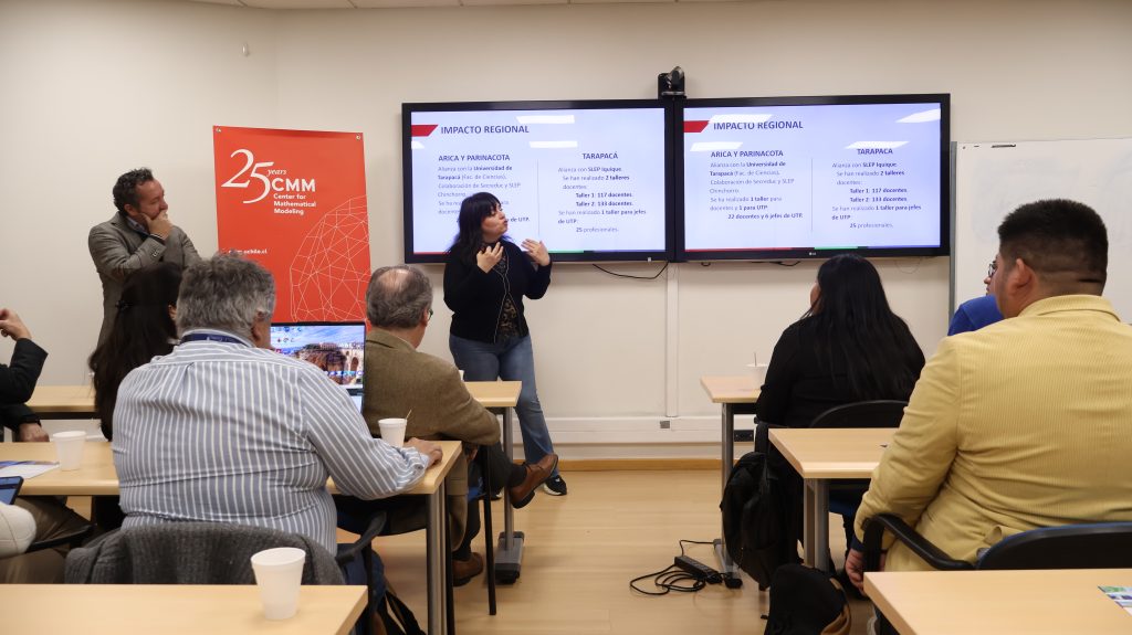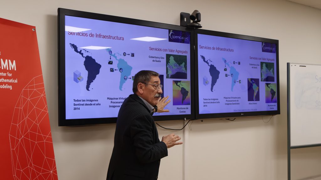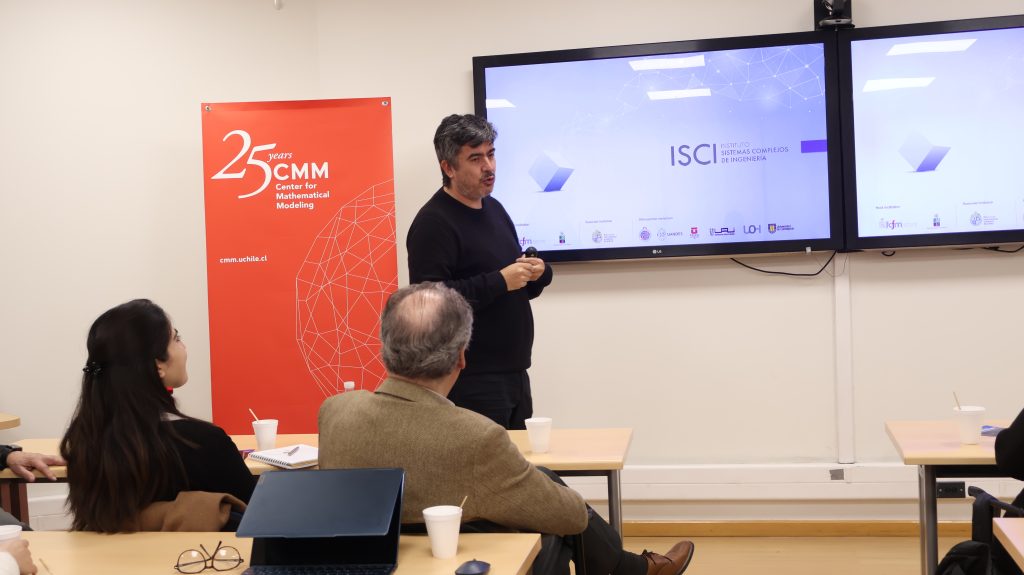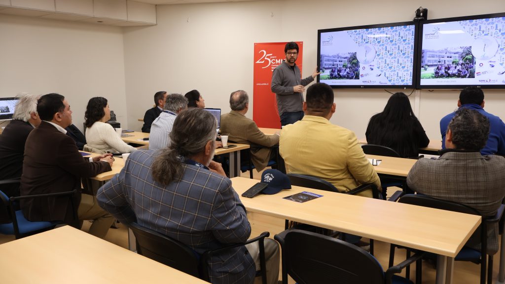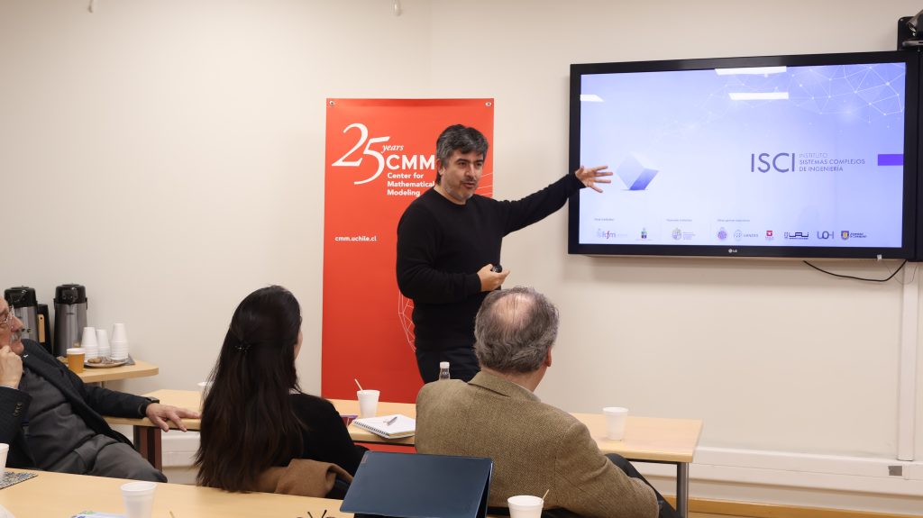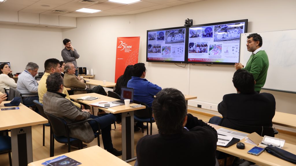 O encontro contou com apresentações de Willy Krach, diretor do Centro de Energia; Héctor Ramírez, diretor do Centro de Modelagem Matemática (CMM); Salomé Martínez sobre o CMMEdu; Jaime Ortega e Florencio Utreras sobre o CopernicusLAC Chile; Marcel Goic, diretor do Centro de Estudos do Varejo e pesquisador do Instituto de Sistemas Complexos de Engenharia (ISCI); e Rodrigo Cortés, gerente de transferência tecnológica do Centro de Tecnologia em Mineração Avançada (AMTC).